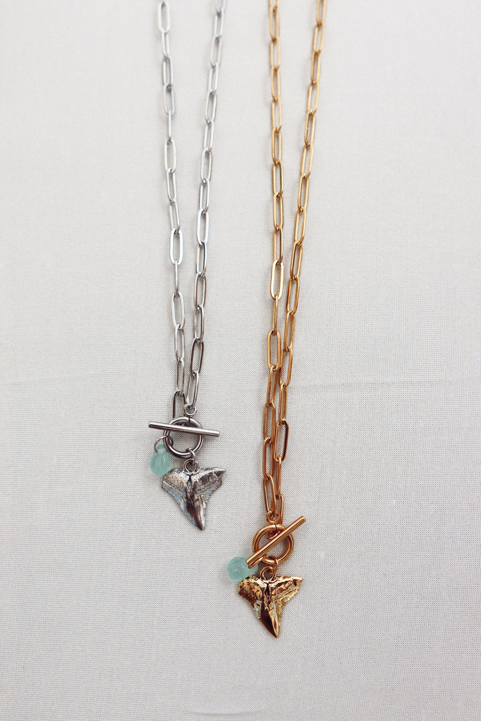Please note: the gold shark tooth is plated, and with frequent water wear, its color may naturally fade over time.