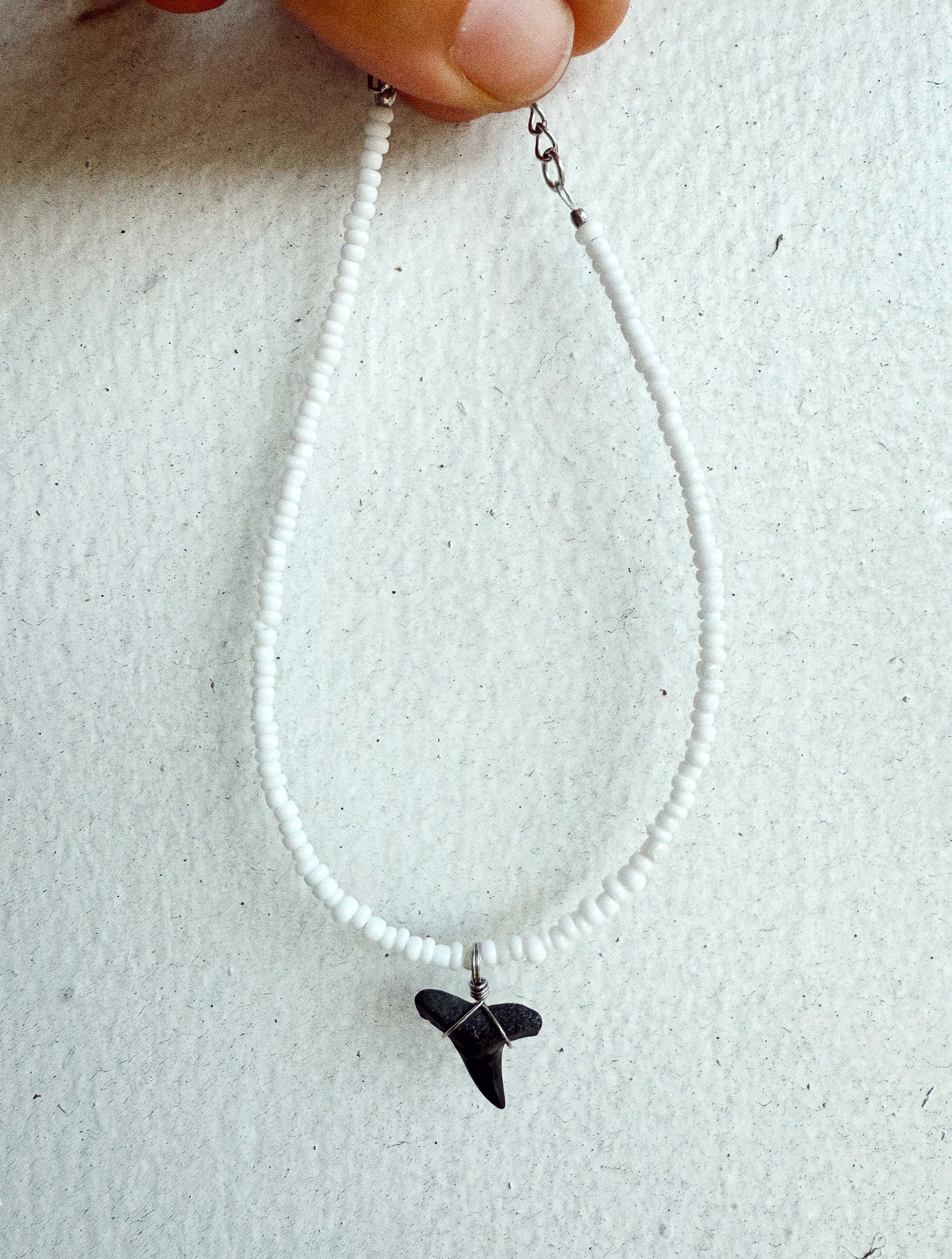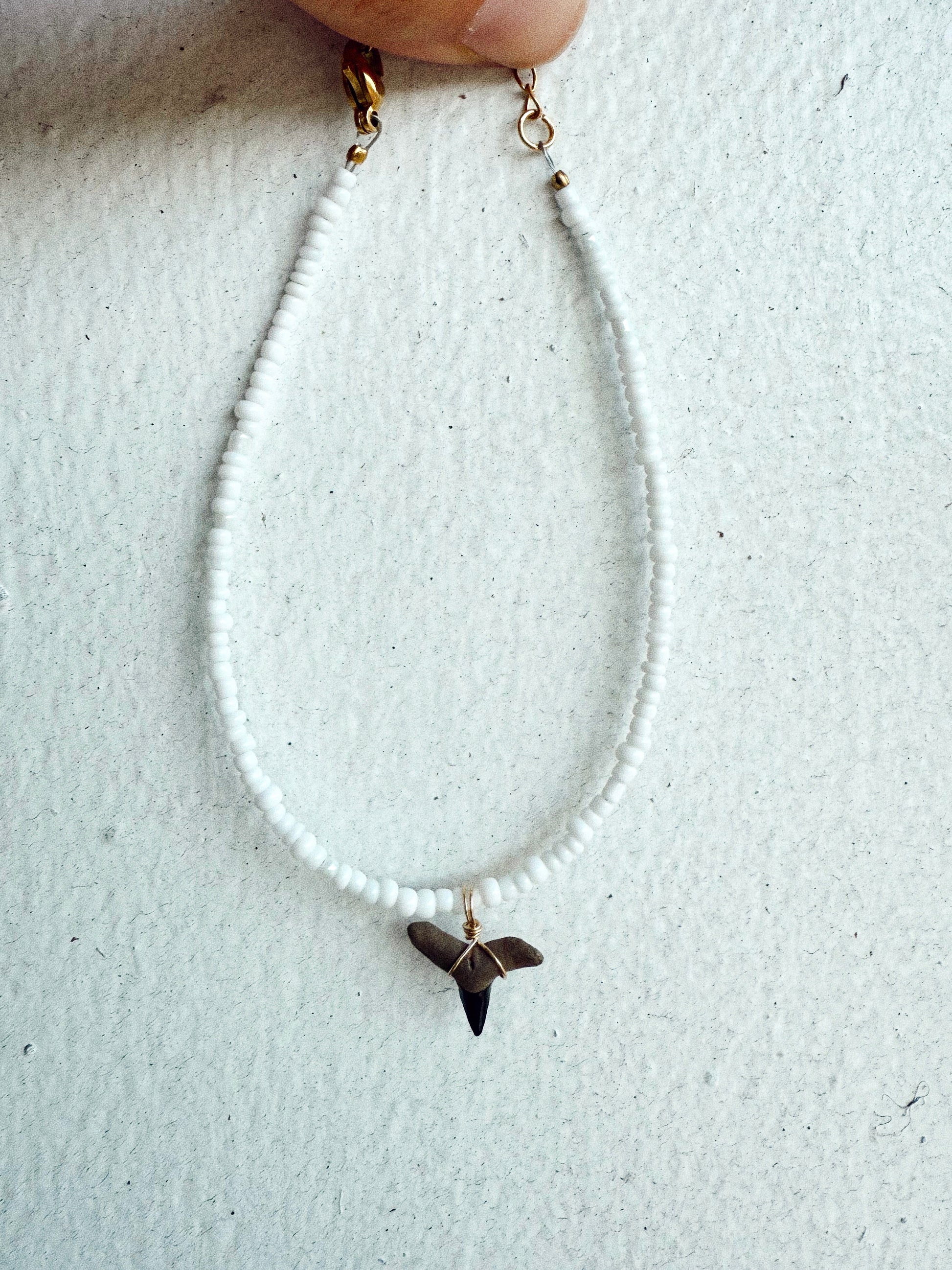 Each piece features a genuine fossilized shark tooth and carefully selected stones, making every design one of a kind.